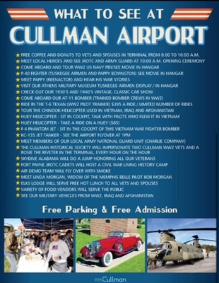 Join the Cullman community in a heartfelt tribute to veterans across generations at our annual Veterans Day Celebration. This family-friendly, day-long event is free and open to the public (with free parking), and is designed to tell the stories, showcase the sacrifices, and celebrate the service of those who have defended our freedoms.